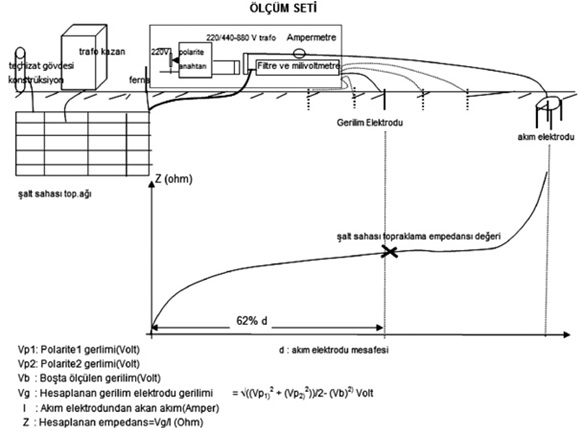 Yüksek gerilim tesislerinde açma-kapama olayları, yıldırım, elektrostatik deşarjlar, kısa devreler ve toprak temasları gibi nedenlerle meydana gelen darbe akımlarının direkt olarak toprağa akıtılması gerekmekte ve bu nedenle topraklama ağı tasarımının standartlara uygun olması istenmektedir. Yüksek Gerilim tesisi olan santral ve şalt sahalarının topraklama empedanslarının ölçülmesinde bugün geliştirilmiş özel yöntemler uygulanmaktadır. Bunlardan en